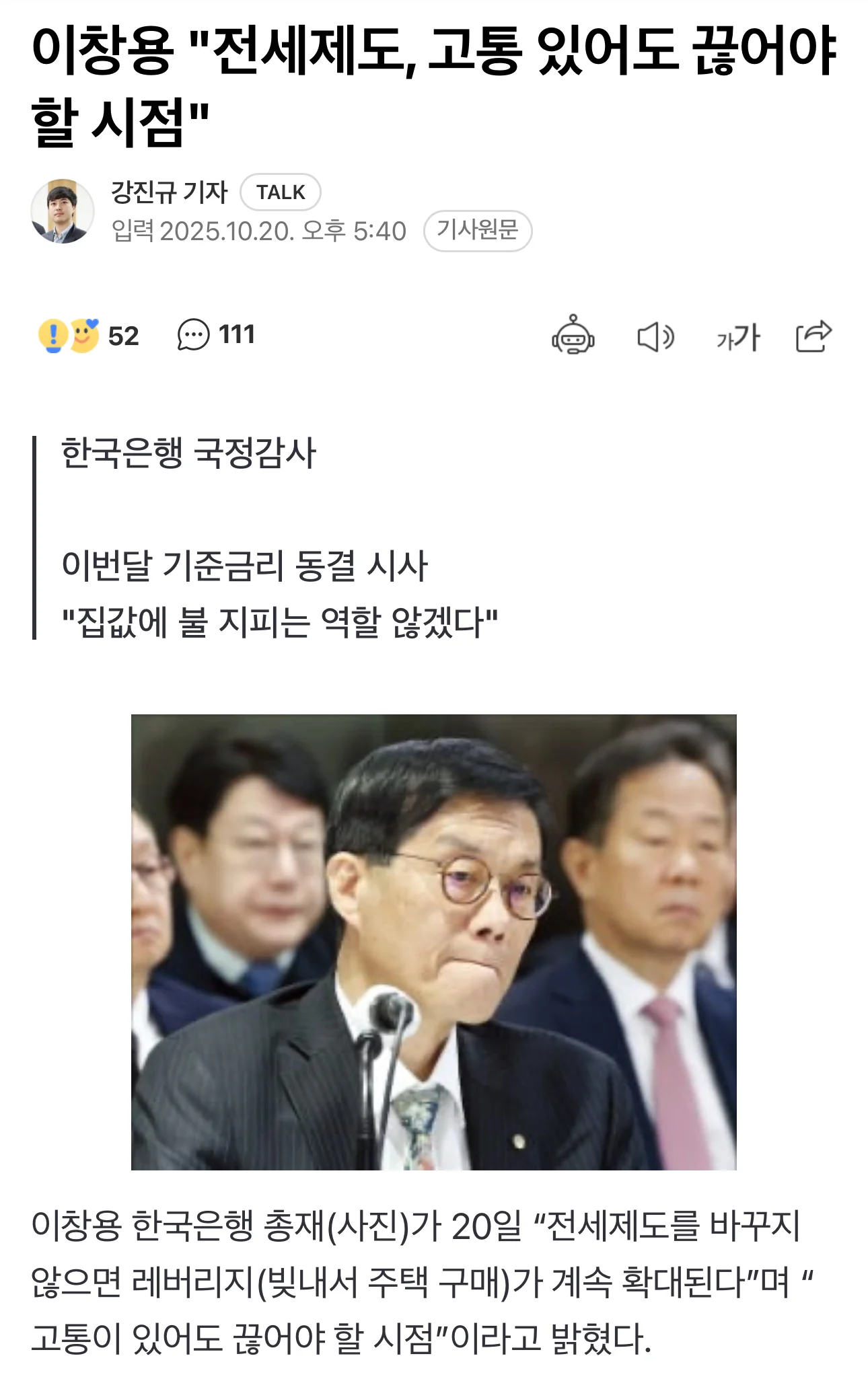 창용쿤 : 전세 제도 바꿔야 한다.