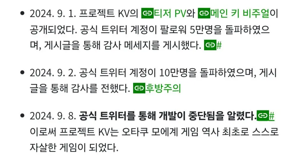 서브컬쳐 게임 중에서 최초의 기록을 세운 프로젝트 KV 덱스트린 0 11 0 0 4시간전 주소복사 복사되었습니다! 서브컬쳐 게임중 최초로 공식출시 전에 자결한 게임으로 기록을 남긴 KV............... 0 0