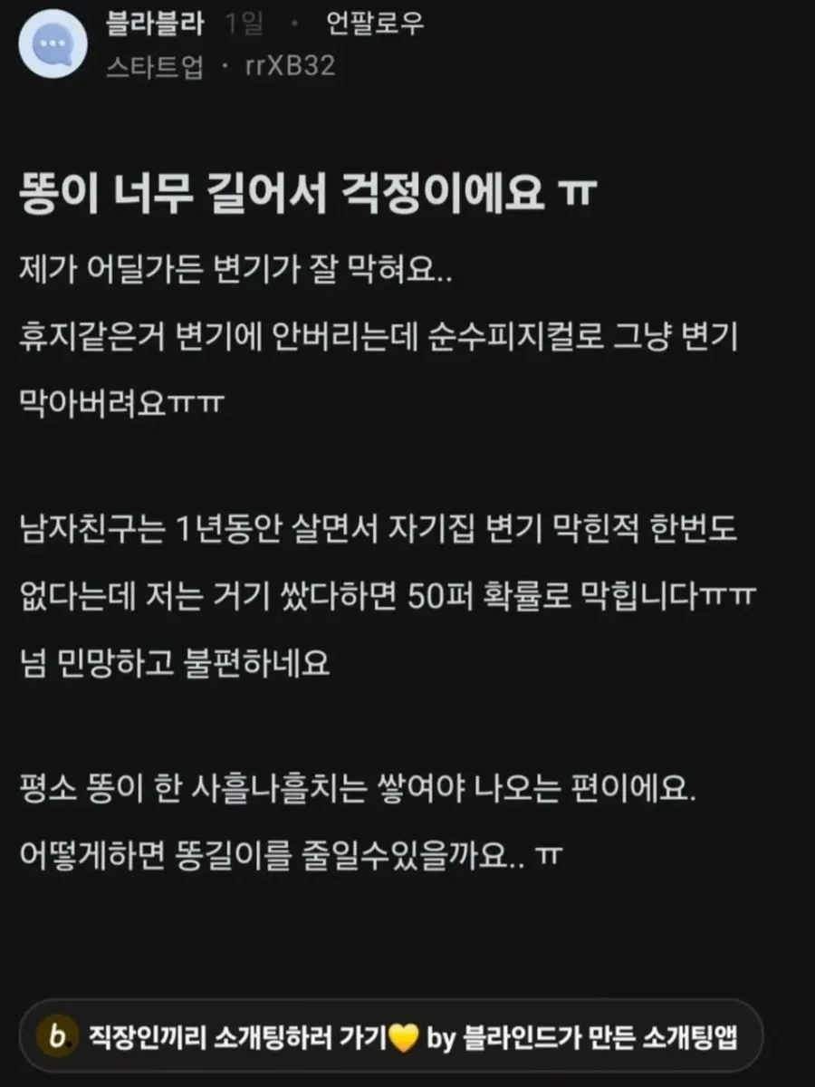 똥이 너무 길어서 고민인 여자