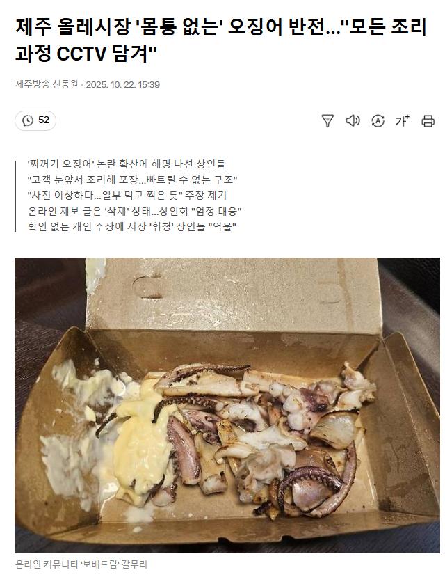 제주 올레시장 오징어 cctv 공개