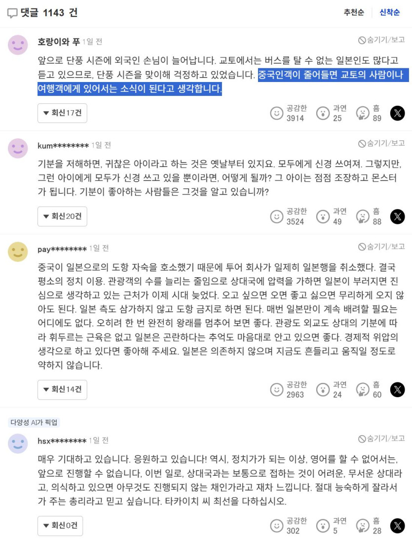 일본 여행업계 근황 탈아입구 0 12 0 0 11.19 18:42 주소복사 복사되었습니다! 전체 외국인 관광객의 1/3에 달하는 중국계 관광객 감소로 중국인들의 일본 단체 여행이 많이 취소되고 일본은 17조원을 손해볼 것이라고 예상되고 관광업계에 종사하는 일본인들은 걱정하고 중국인 유학생으로 밥벌어 먹는 일본인들도 걱정중이지만 일본인들은 왜인지 반기는듯 하다 0 0