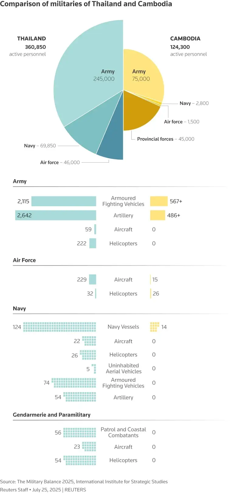 태국군 vs 캄보디아군 전력요약