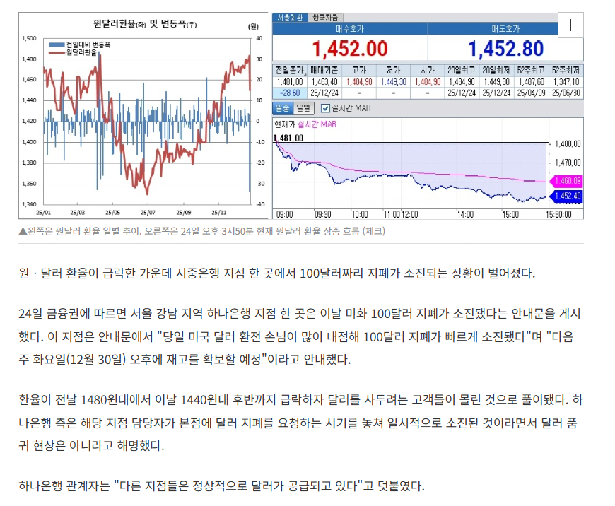 강남 은행 100달러 품절 a_vigil… 0 13 0 0 12.24 22:24 주소복사 복사되었습니다! https://www.etoday.co.kr/news/view/2539637 환율 급락에 수요 폭증 돈 있는 사람들이 먼저 움직였다? 더 올라갈거란 공포에서 일까? 0 0