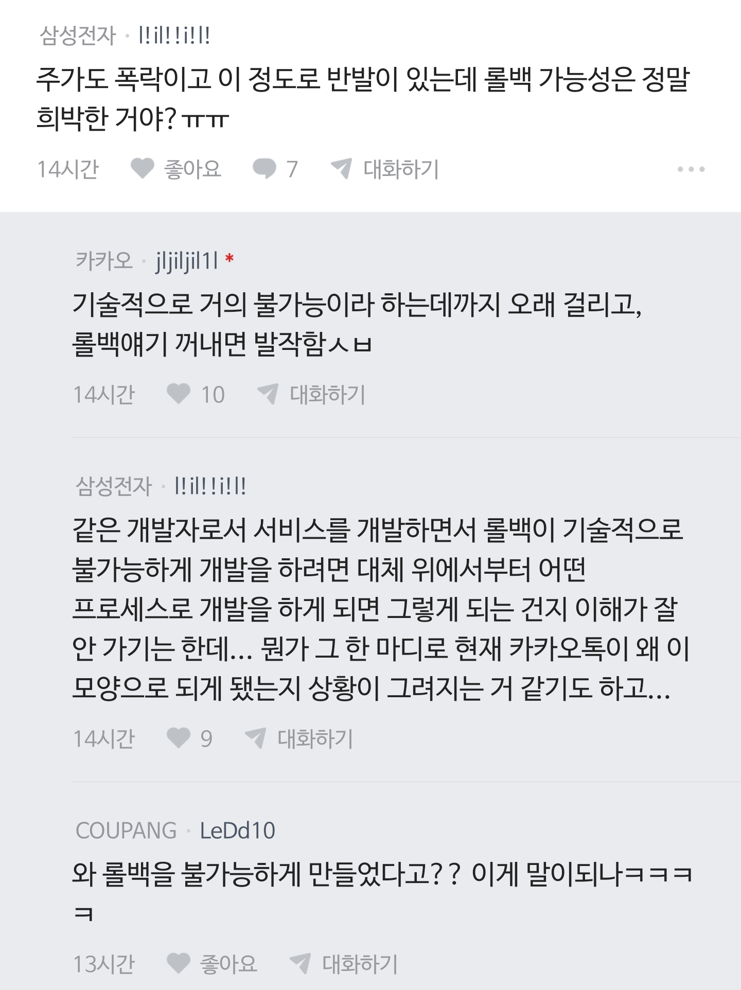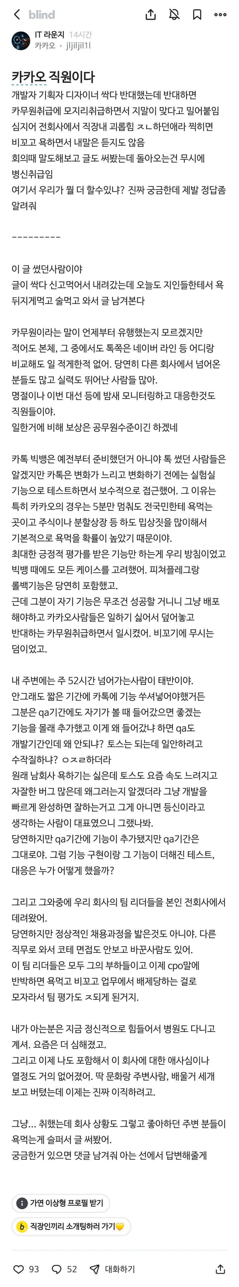 카톡 업뎃 반대하면 카무원 취급과 무시당했다 폭로했던 블라인 후기글