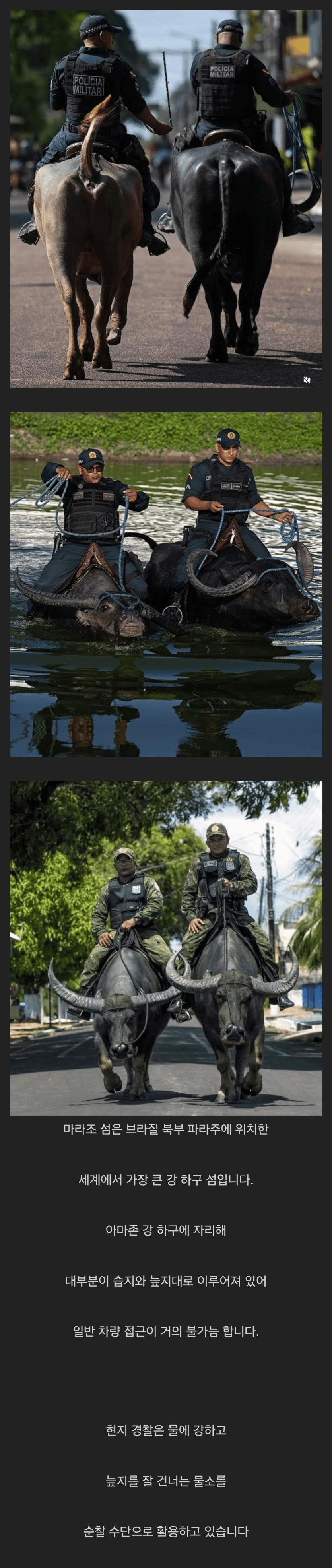 순찰차 대신 물소를 타고다니는 브라질 경찰