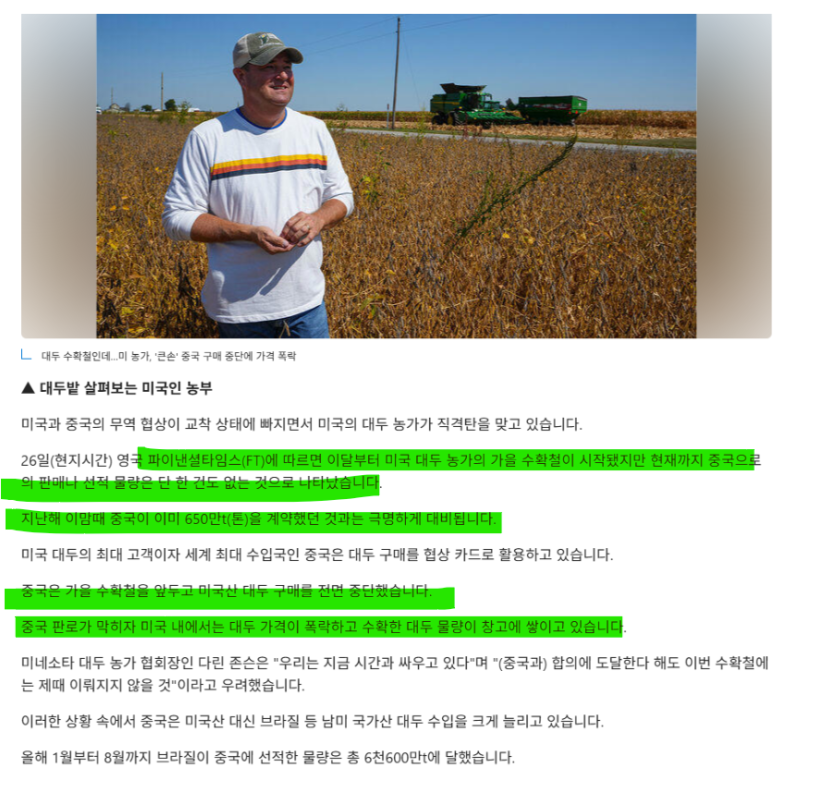 대두 수확철인데…미 농가, '큰손' 중국 구매 중단에 가격 폭락 남탓NONO 0 79 0 0 09.28 22:42 주소복사 복사되었습니다! 잘하고 있어 !! 살면서 중국응원 처음이네 https://www.ddanzi.com/free/860612991 0 0