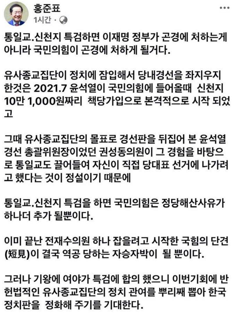 신천지 관련 홍감탱 페북