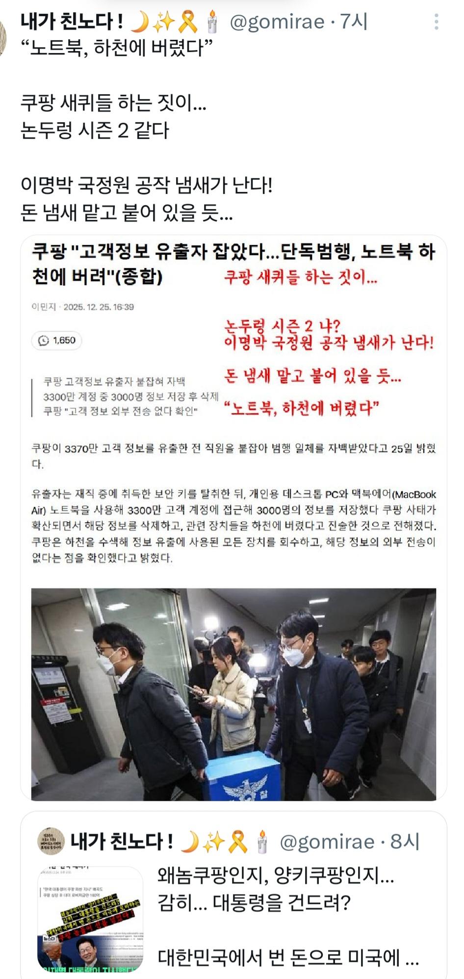 쿠팡 새X들 하는 짓이..논두렁 시즌 2 같다