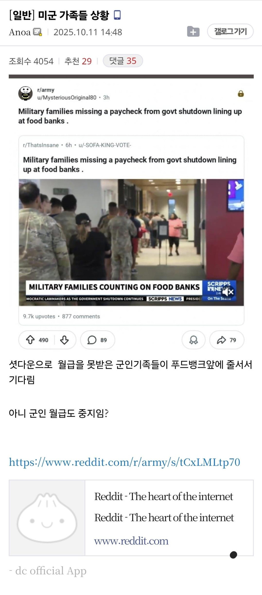 정부 셧다운으로 군인 월급도 못주는 미국 다꼬상 0 9 0 0 10.11 22:00 주소복사 복사되었습니다! https://www.reddit.com/r/army/comments/1o3jzyr/military_families_missing_a_paycheck_from_govt/?share_id=F4-q0Q18AxOWsmenraouu&utm_content=1&utm_medium=android_app&utm_name=androidcss&utm_source=share&utm_term=1 0 0