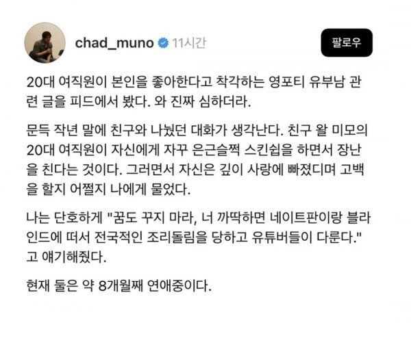 미모의 20대 여직원이 자기한테관심있는것 같다는 영포티