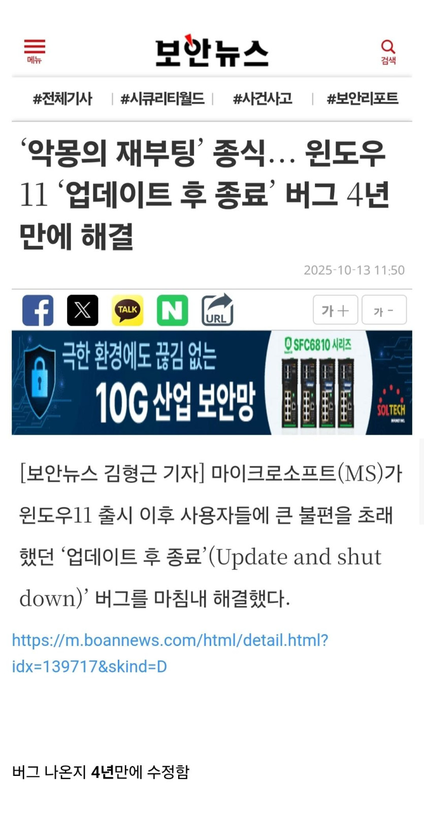 윈11 "업데이트 후 종료" 누르면 재부팅되는 버그 4년만에 고쳐짐