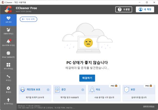 • 정크 삭제와 PC 성능의 자동 분석, 수정 및 최적화로 속도 향상