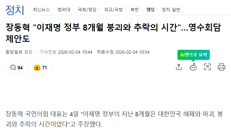 장동혁 "이재명 정부 8개월 붕괴와 추락의 시간"… 어린피아노 0 14 0 0 1시간전 주소복사 복사되었습니다! 해체된 대한민국 외교에서 정상으로 만들었고... 주식시장 3000 붕괴되서 4000으로 갔고... 4000도 붕괴되서 5000으로 갔고... 지금 5000도 붕괴되서 6000향해 가는 중이다... 미친노마... 0 0