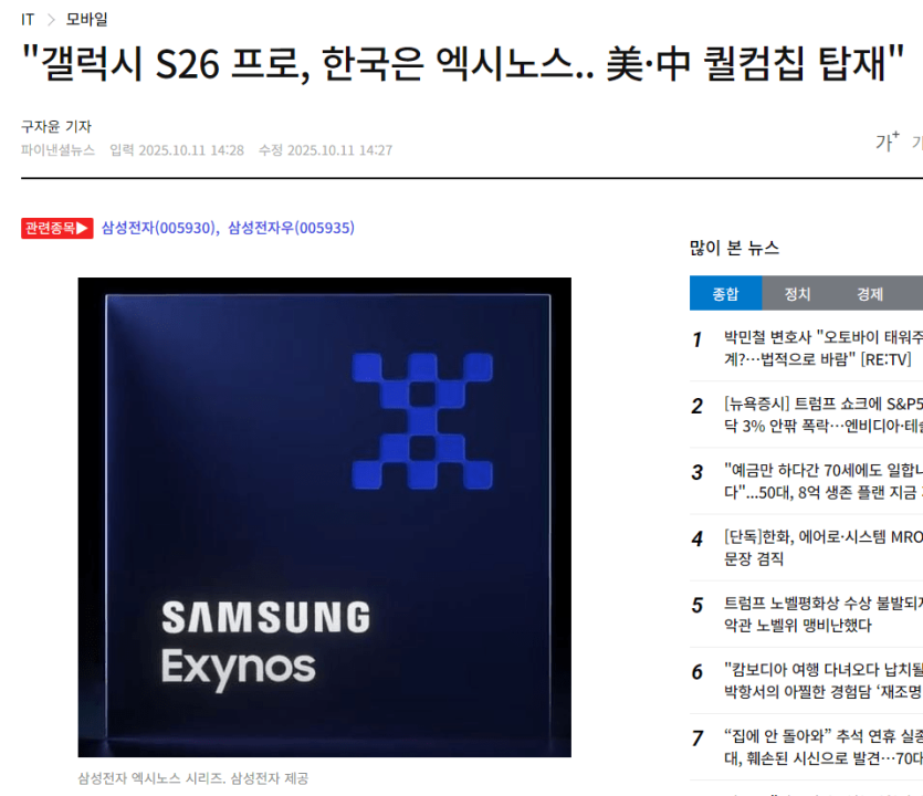 갤럭시 S26, 한국은 전량 엑시노스 탑재.leaks ㅎㄷㄷㄷ