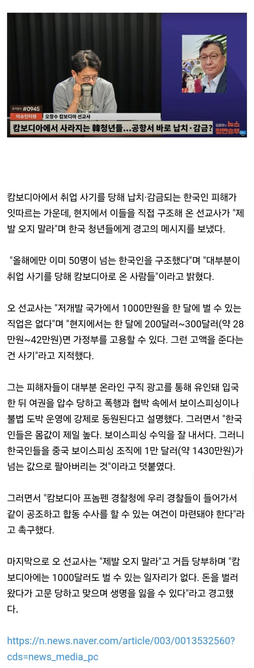 캄보디아 범죄단지에서 살아서 돌아온 한국인 인터뷰