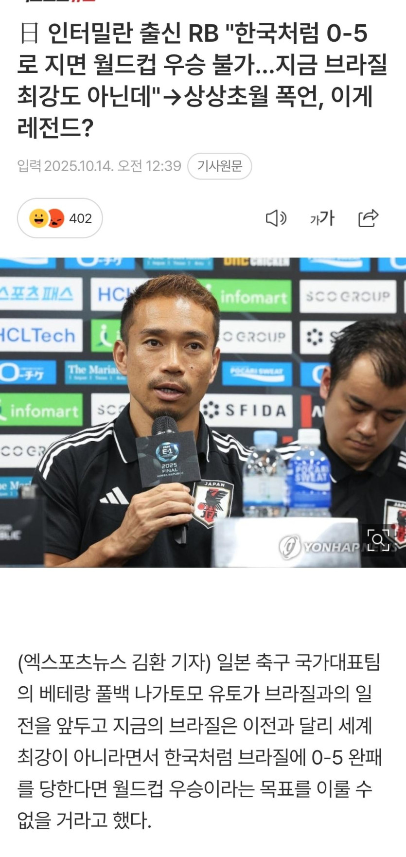 일본 曰 “한국처럼 브라질에 털리면 월드컵 우승 힘들어”