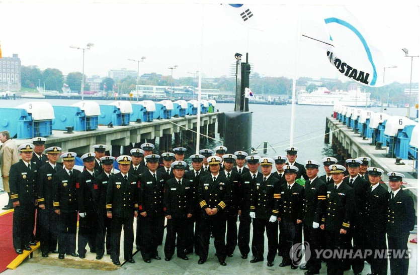 1992년 독일에서 찍힌 장보고함 인수 승조원들의 기념 사진