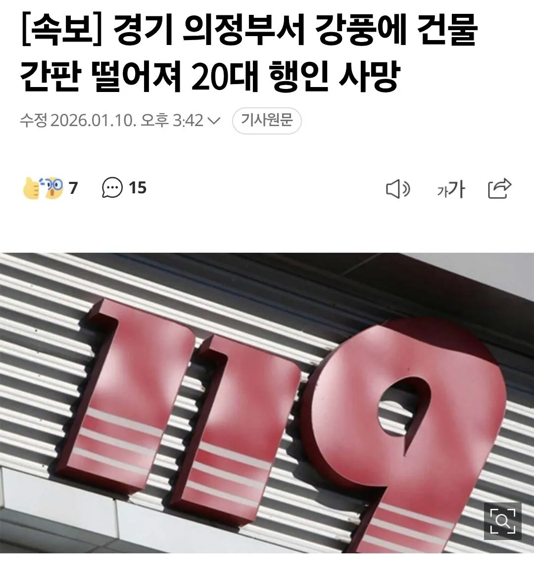 [속보] 경기 의정부서 강풍에 건물 간판 떨어져 20대 행인 사망 검정봉다리 0 17 0 0 01.10 16:52 주소복사 복사되었습니다! https://n.news.naver.com/article/214/0001473446 https://n.news.naver.com/article/214/0001473446 0 0