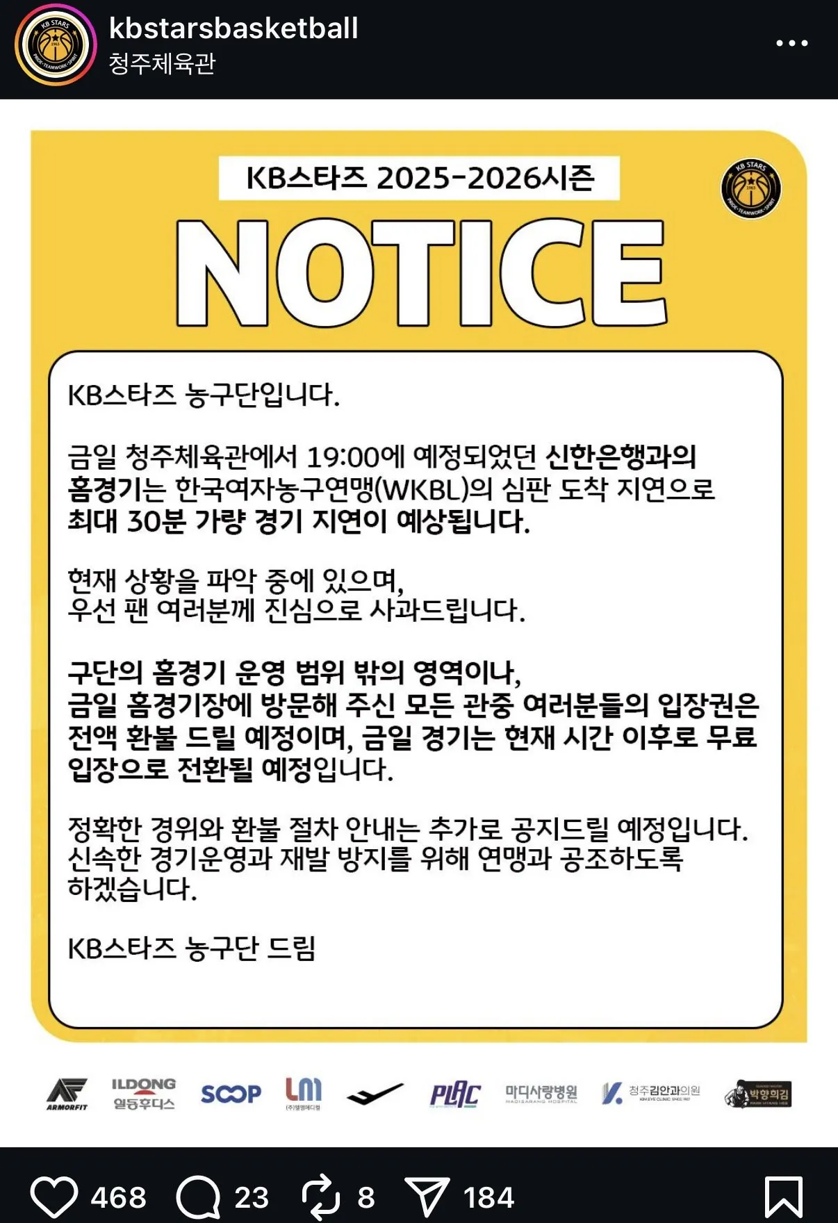 어제 여자농구에서 발생한 사상 초유의 사건.jpg 웃짜라자짜 0 7 0 0 01.17 14:26 주소복사 복사되었습니다! 심판이 지각해서 경기 늦게 시작 ㄷㄷ 청주 KB스타즈는 구단 책임은 없지만 도의상 입장객들 전액 환불 및 무료 관람 진행 결과는? KB 스타즈 승 0 0