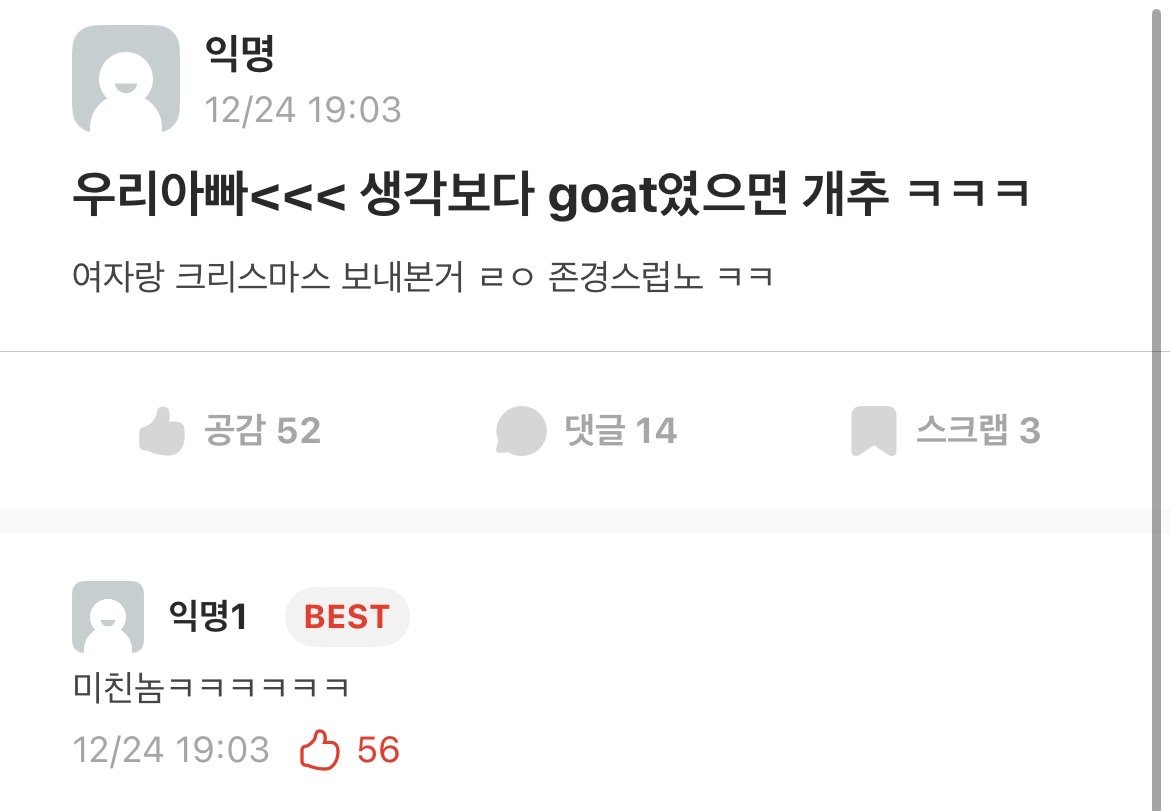 우리 아빠 <<< 생각보다 goat였으면 개추ㅋㅋㅋ