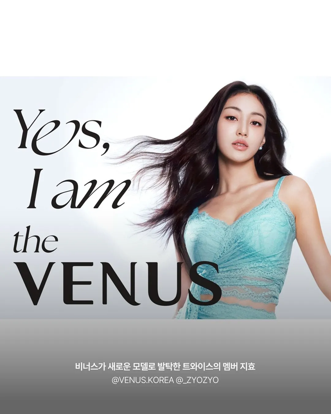 [오피셜] 속옷회사 비너스, 트와이스 지효로 14년 만의 전속 모델 ... 킁킁킁헷 0 13 0 0 01.30 20:26 주소복사 복사되었습니다! 기존 이하늬에 이어 트와이스 지효로 전속모델 바톤터치 사랑의 비너스 ~ 0 0