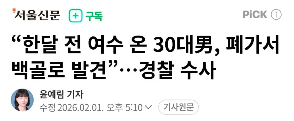 “한달 전 여수 온 30대男, 폐가서 백골로 발견”…경찰 수사