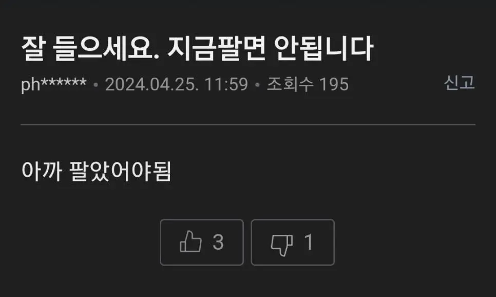 ??? : 잘 들으세요. 지금 팔면 안됩니다