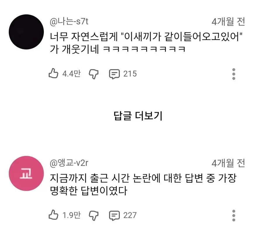 10분 먼저 출근 vs 정시출근 논쟁해결한 충주맨 싸구려댄스 0 7 0 0 5시간전 주소복사 복사되었습니다! https://youtu.be/s9O7qMFV1GI?si=i11rcb8iHNSkYah0 0 0