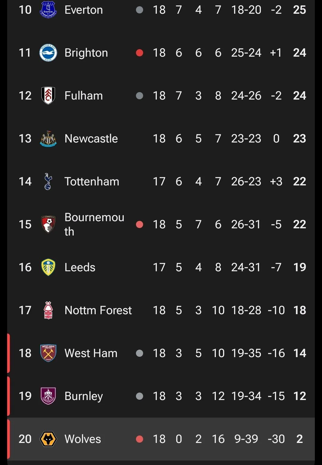 현시점 PL 20위 울버햄튼 성적 체감해 보기